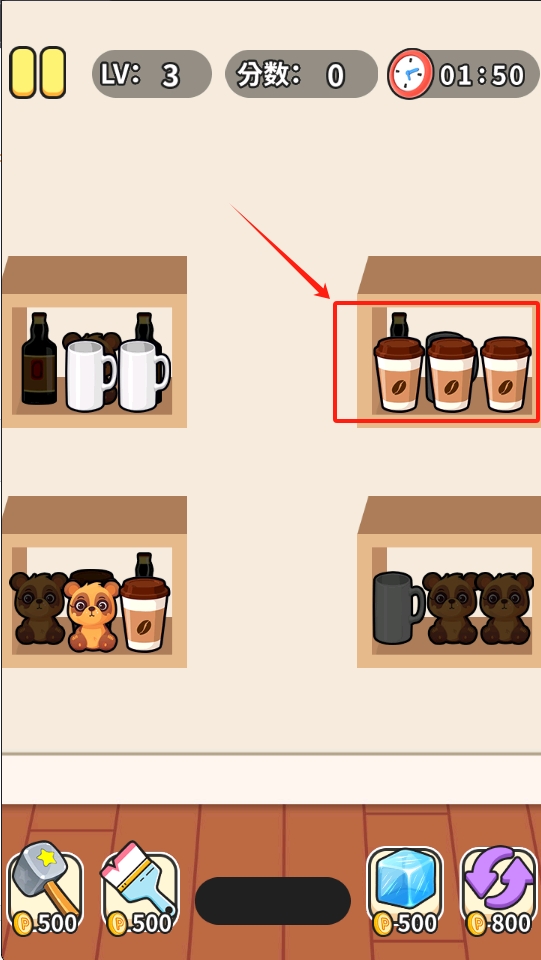 2、移动物品,将三个一样的摆放在一起。