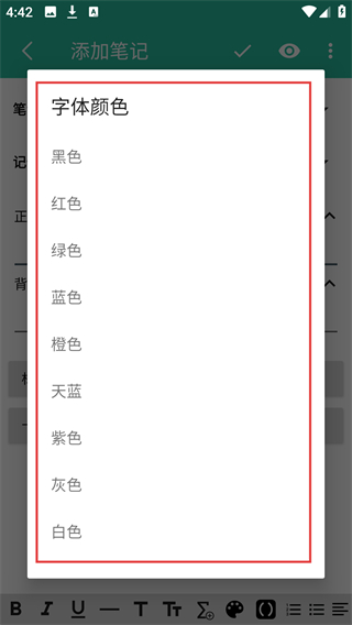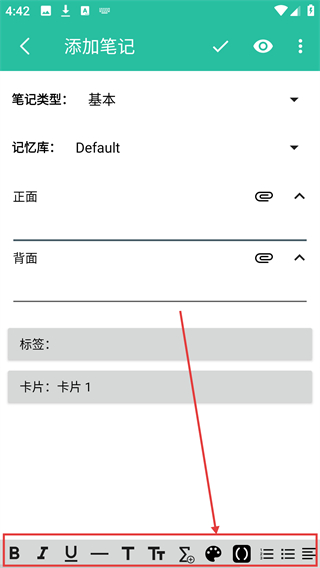 3、进入添加笔记页后,可在正面、背面栏输入内容,还能点底部工具栏调整文字格式呢。