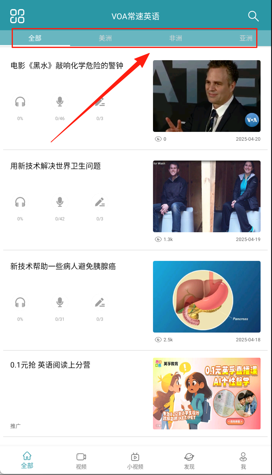 1、在【VOA常速英语】页面,选目标文章条目,就能进入对应的内容详情页,开始学习啦。