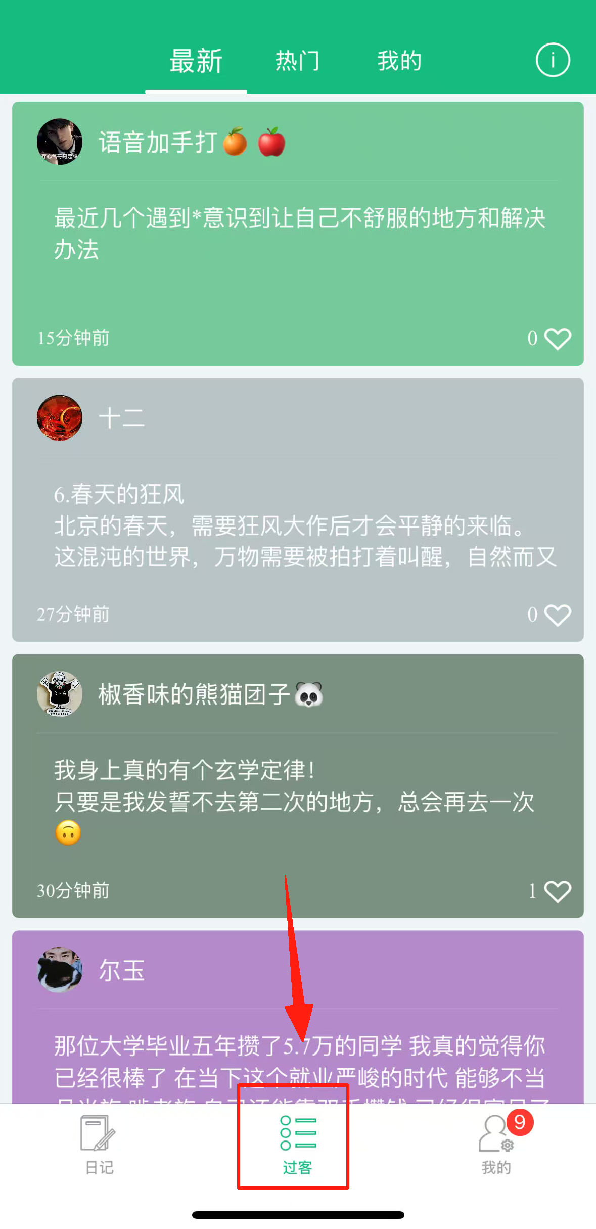 2、还可以在过客查看别人的小记录。