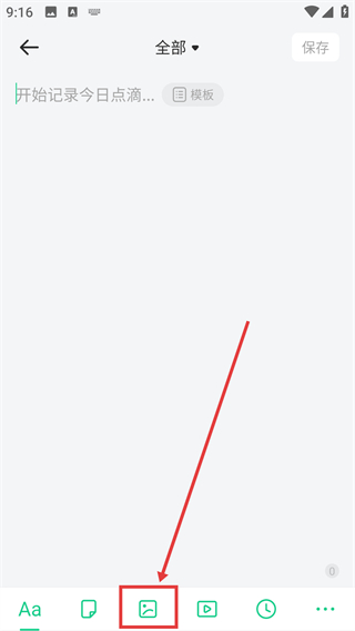 2、在日记编辑界面,点击底部的图片图标按钮,打开图片相关功能面板,可添加图片到日记中哦。