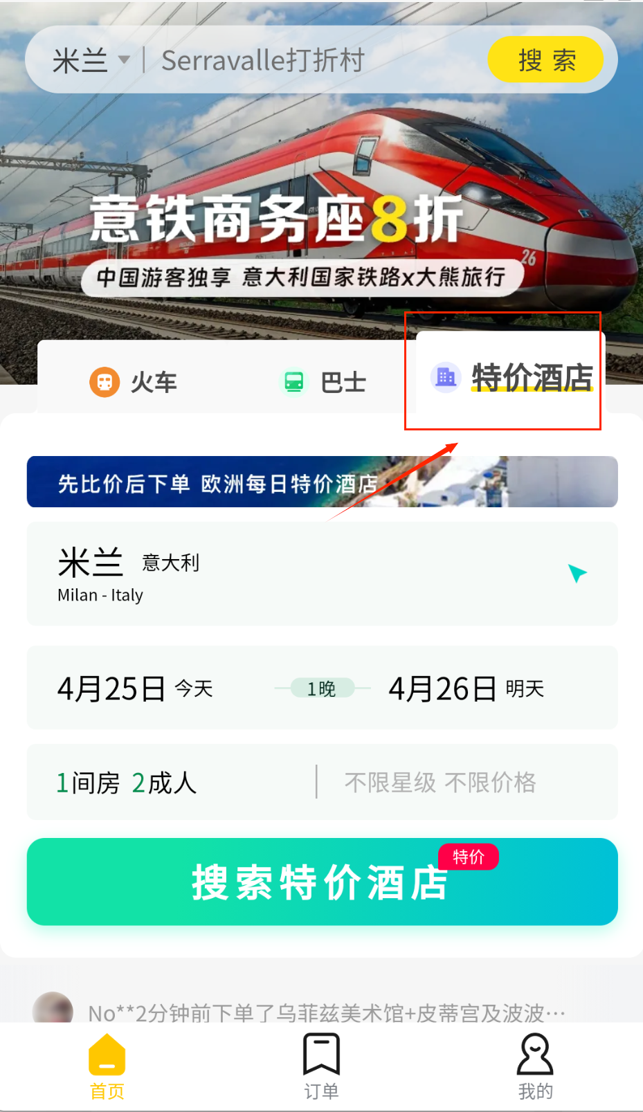 1、首先,打开软件,在首页的特价酒店中找到并点击“探索酒店”按键。