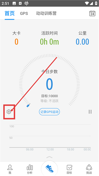 1、在首页点齿轮状的设置按钮,就能进入计步器设置页面,调整计步相关的配置啦。