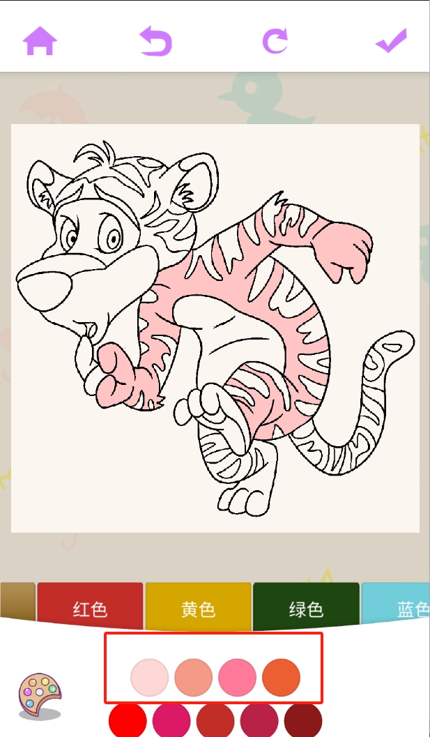 2、丰富素材选择:游戏内有大象、蜗牛、鲜花、小猫、绵羊等众多有趣的小动物和植物图案,满足孩子多样化的绘画需求。