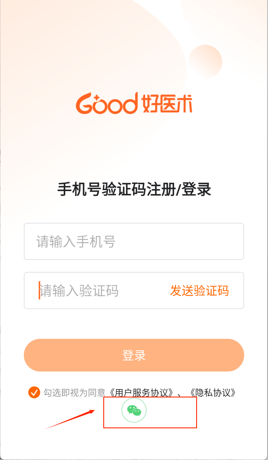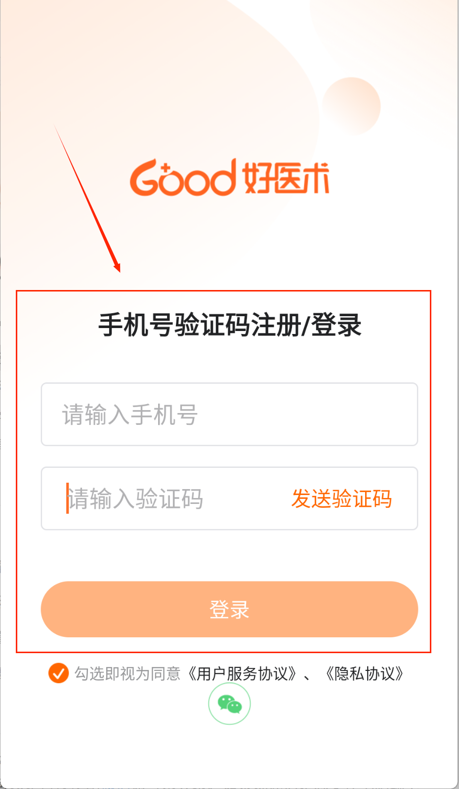 1、首先我们打开好医术app之后,可以利用验证码来登录。