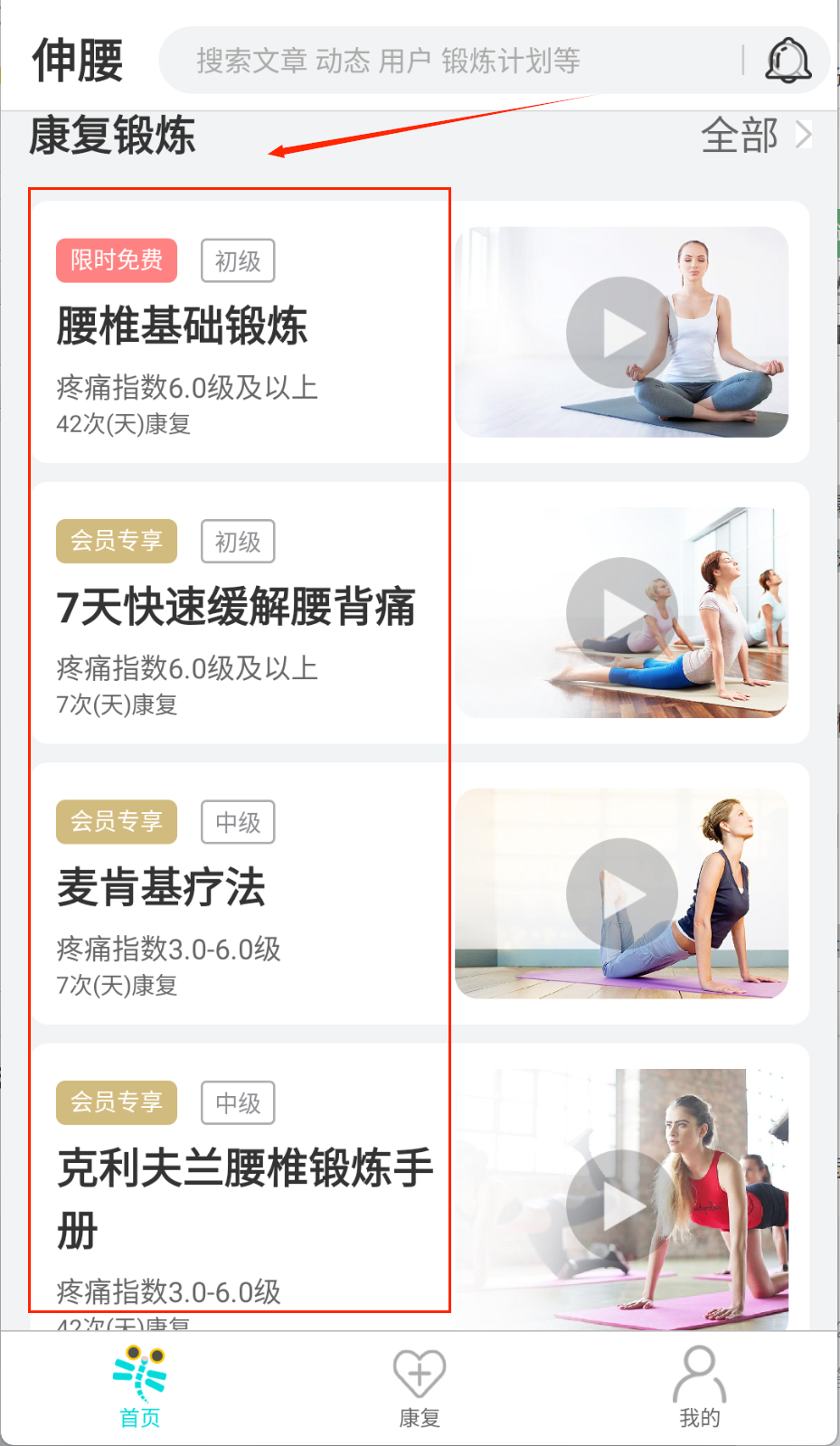 1、打开应用后选择适合的康复课程,比如腰椎基础锻炼或麦肯基疗法,跟着视频动作逐步练习,注意保持姿势标准以免受伤。