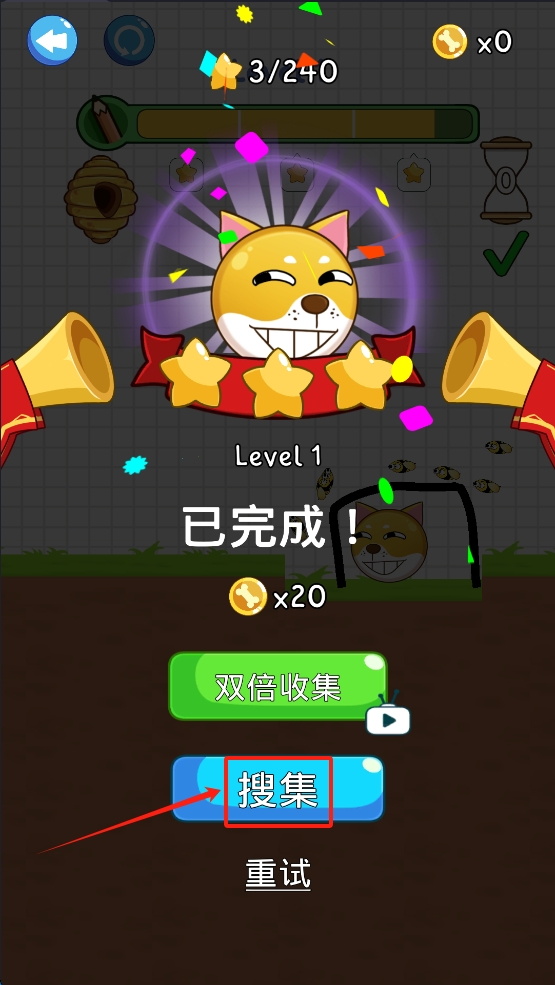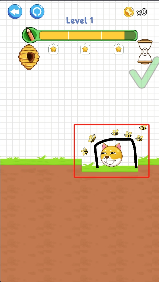 2、其次,滑动屏幕划线让柴犬不要接触到蜜蜂。