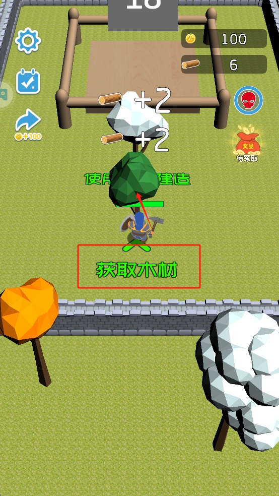 3、当木材不足时,通过砍树来获取更多木材以进行建筑升级。