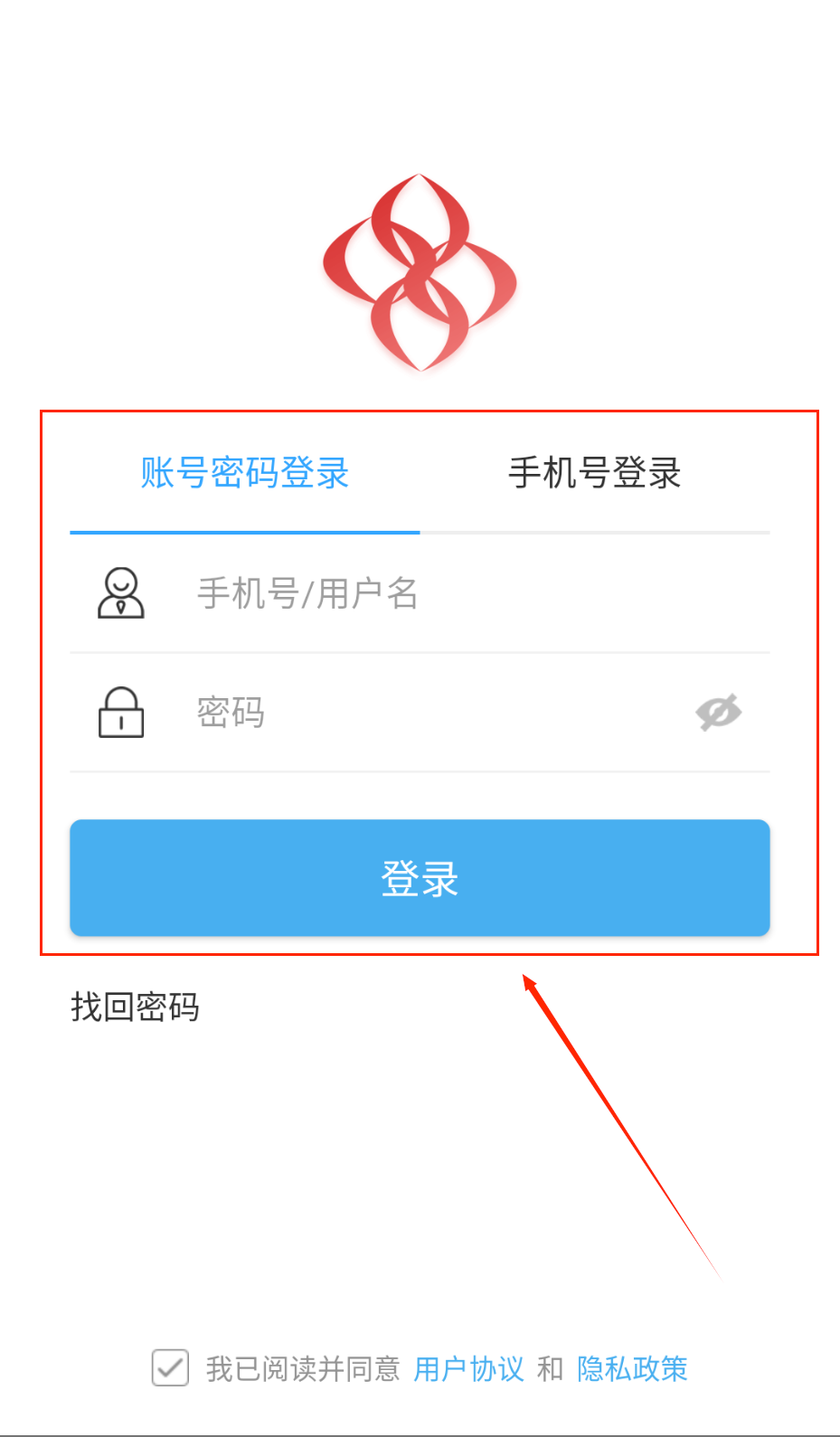 1、进入软件后,用账号密码登录。