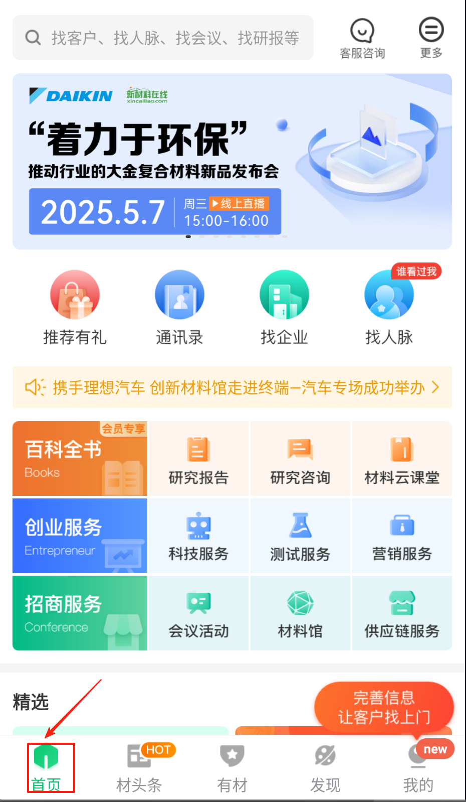 1、打开应用,进入首页,浏览行业动态或使用搜索功能查找特定材料资讯。