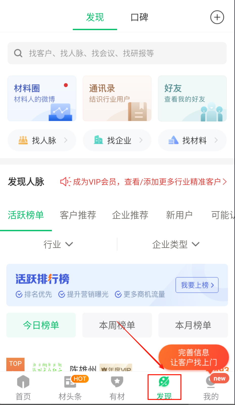 2、在发现页探索融资并购项目库,或参与行业会议拓展人脉资源。