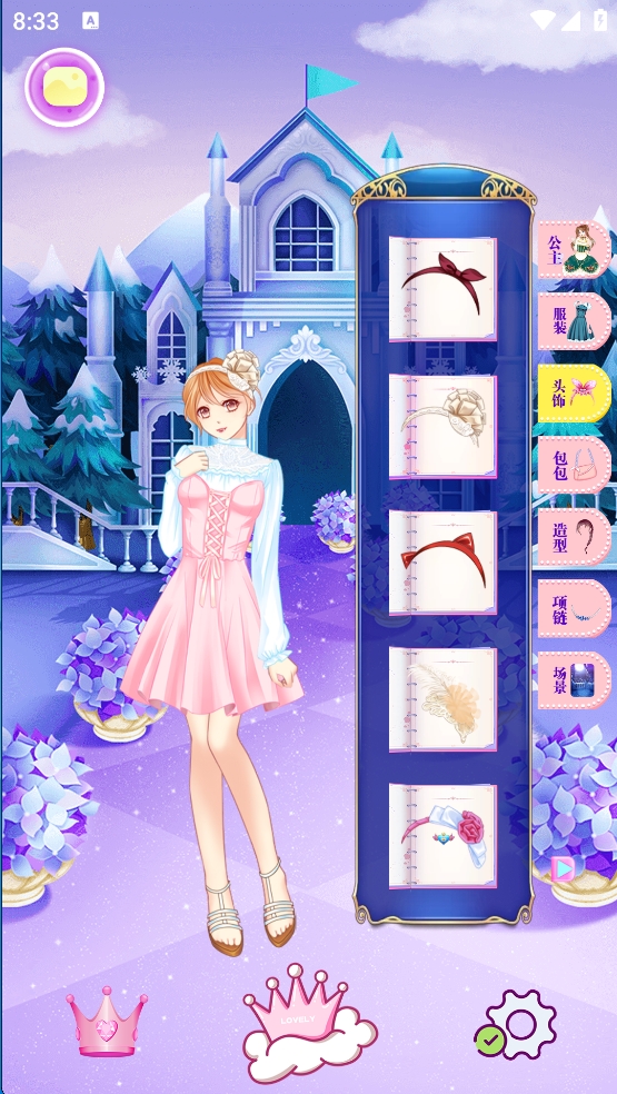 4、完成整体造型:为化好妆的公主搭配发型和发饰,别忘了挑选相配的礼服,打造完美形象。