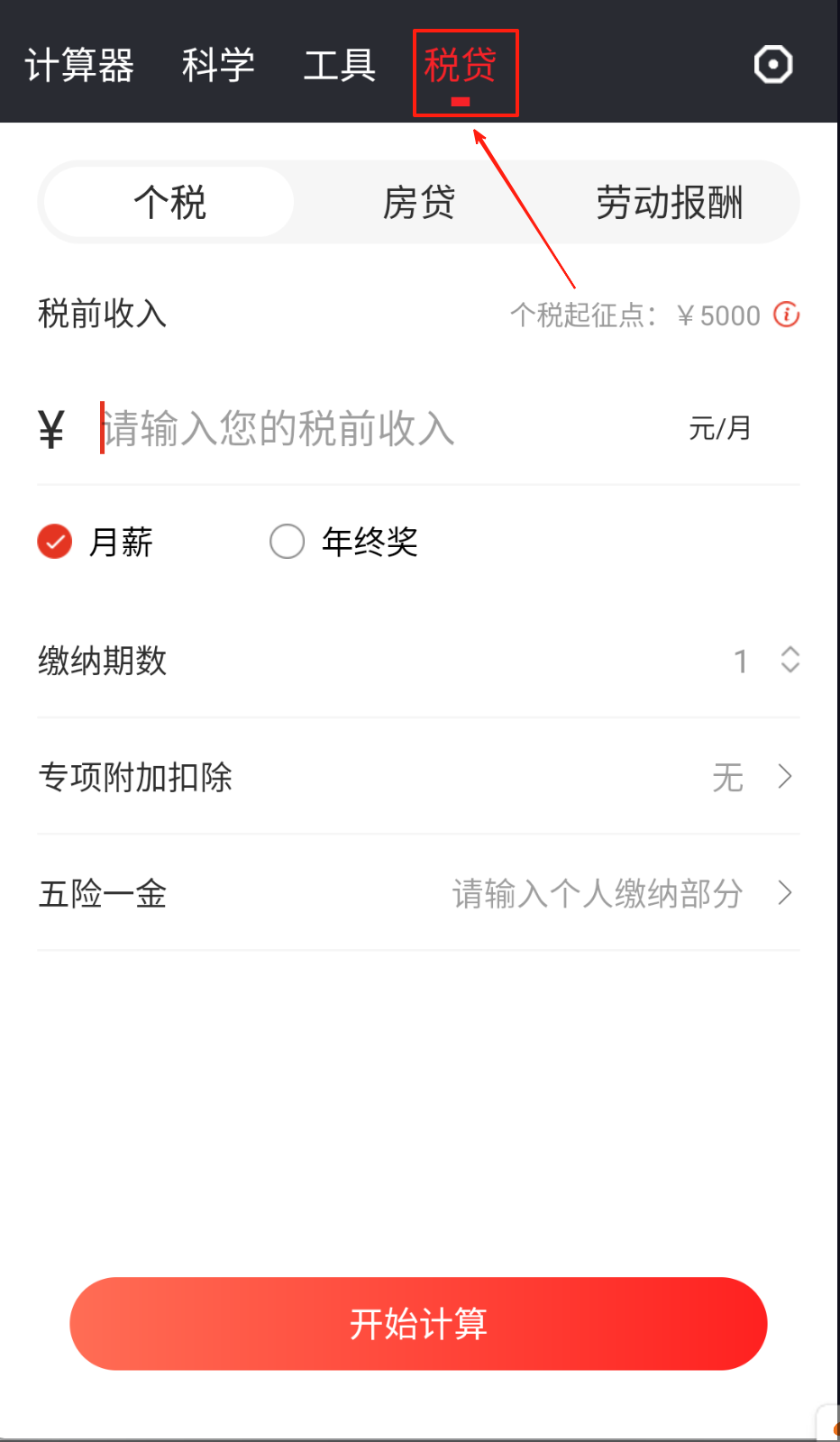 3、在"税贷"模块选择对应计算类型,输入相关参数即可自动生成贷款或税务分析报告。