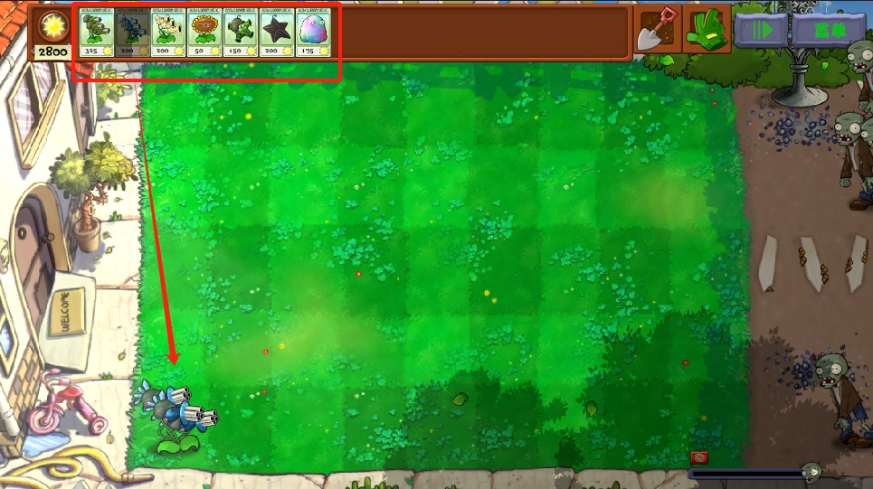 3、种植植物攻打僵尸。