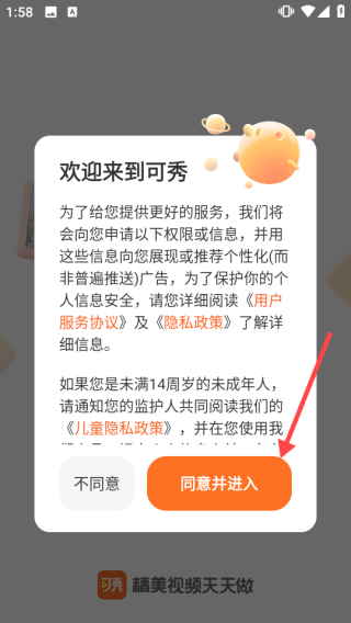 1、打开软件,根据弹窗指示,点击【同意并进入】。
