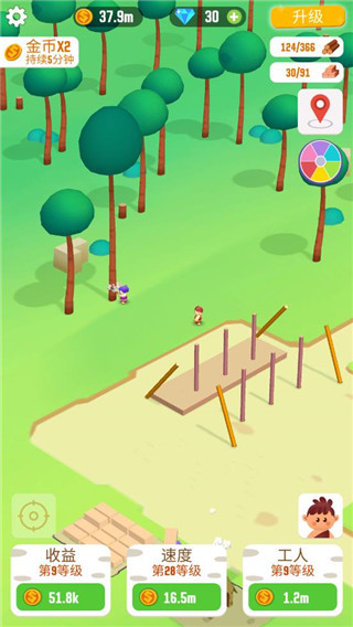 4、扩建与种植:收集木材资源,设置各种地点,扩建村庄土地,种植各种农作物,利用金币、钻石提升游戏等级,提升人员速度,招募更多村民加入。