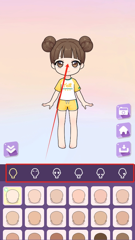 3、选择不同的面部表情来完成角色设计。