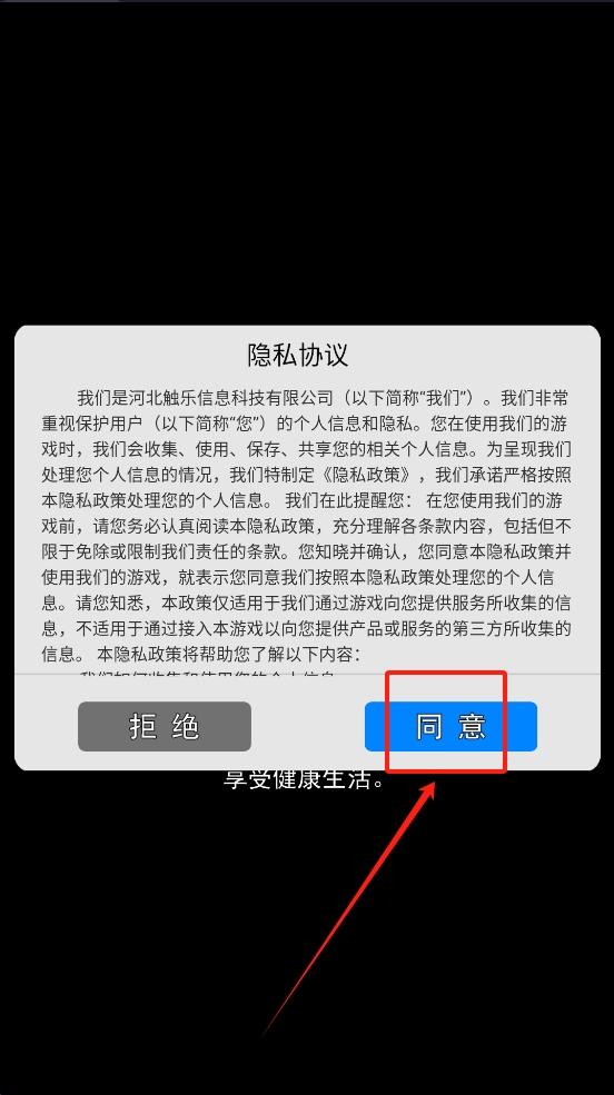 1、阅读并同意隐私协议,点击“同意”按钮开始游戏。