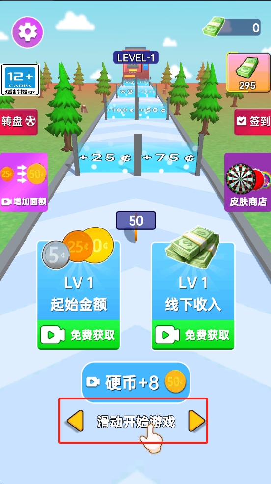 2、精准控制方向:左右滑动调整金币滚动轨迹,确保穿过每个增值光门。