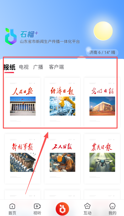 1、点击"互动"界面进入大众拍客模块,按提示提交文字图片视频等素材完成投稿。