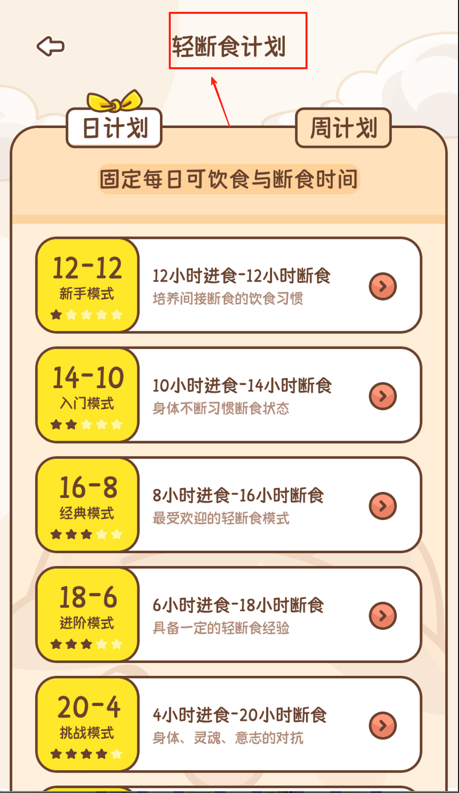 2、进入计划中心选择轻断食方案或自定义每日热量摄入值。