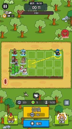 2、随机召唤:通过随机召唤系统,玩家可以获得不同类型的防御塔,并进行合成升级。