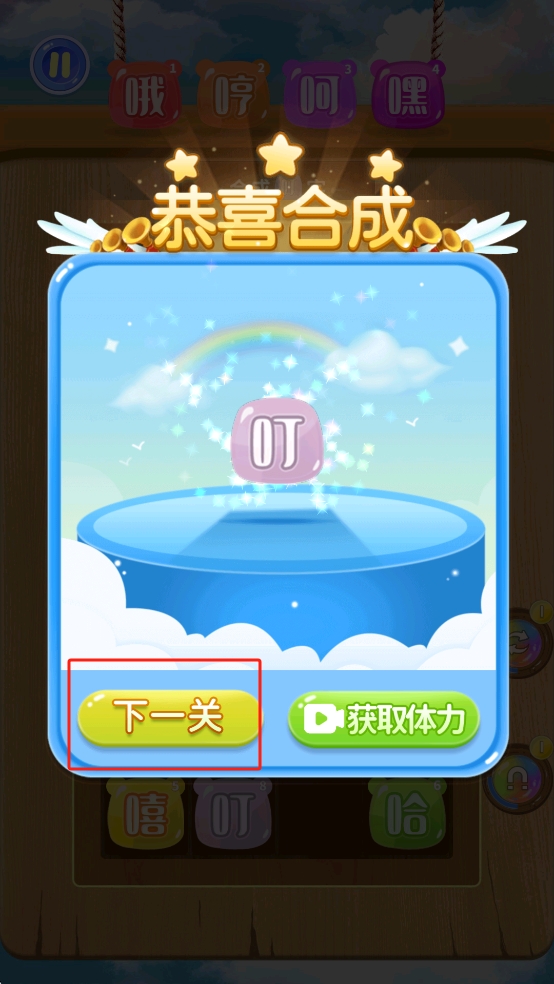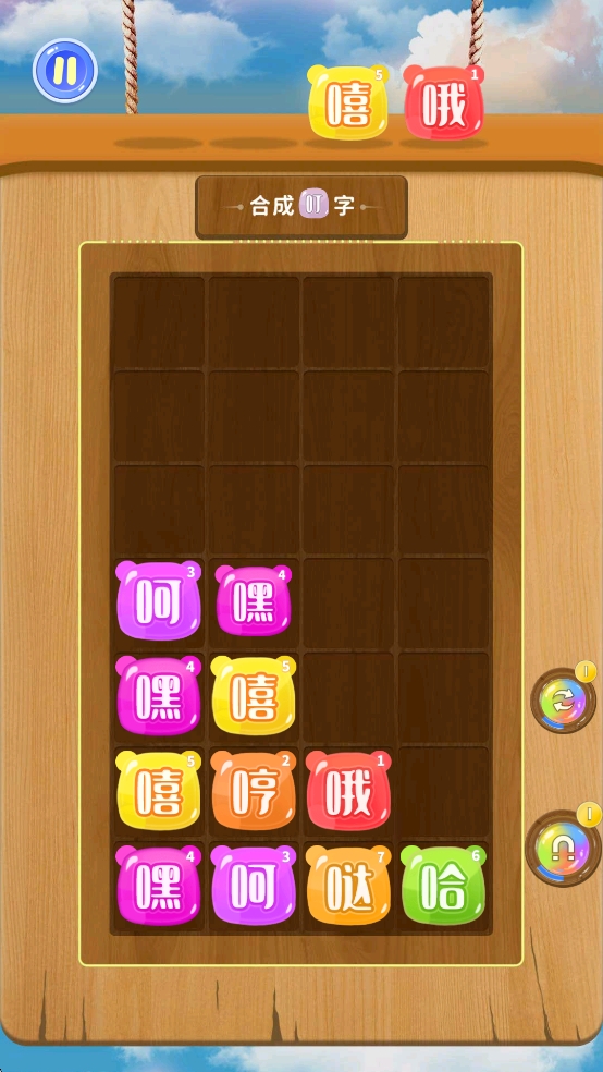 2、合成字块:仔细观察场上字块,将相同的字块移动到一起进行合成,生成新的字块。