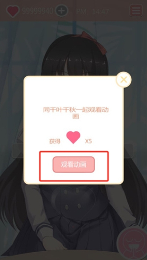 3、另外点击+号按钮,和千叶千秋一起观看动画获得爱心。