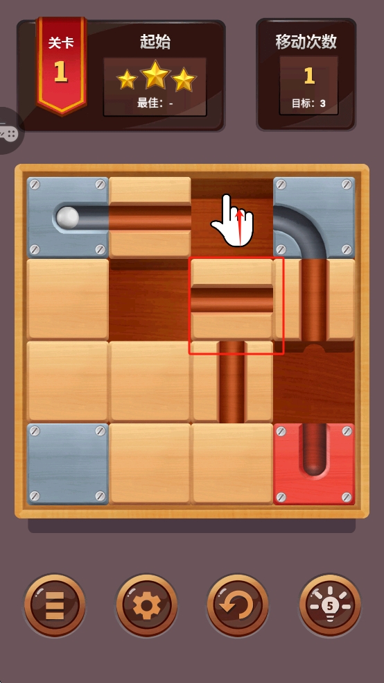 1、核心目标明确:通过拖拽、旋转木块搭建通道,让小球顺利滚入指定区域即可过关,规则简单但策略多变。