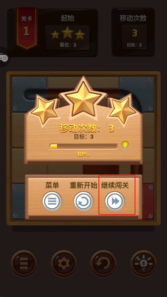 4、完成关卡后,选择“继续闯关”进入下一关。