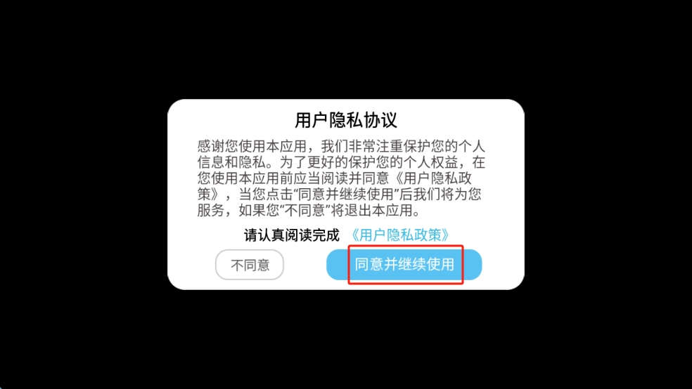 1、阅读并同意用户隐私协议,点击“同意并继续使用”。