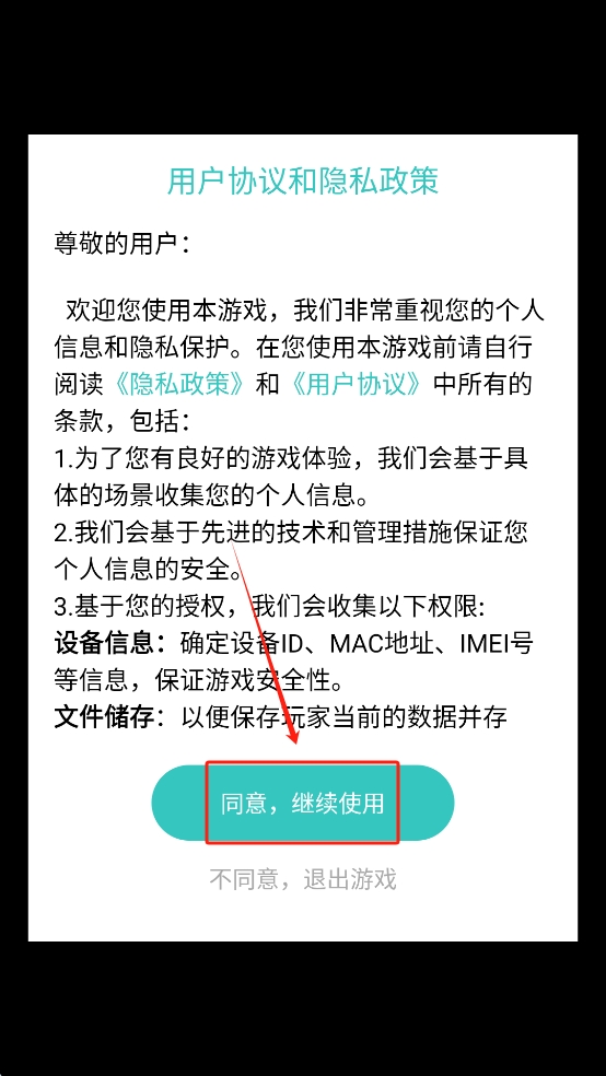 1、阅读并同意用户协议和隐私政策,点击“同意,继续使用”。