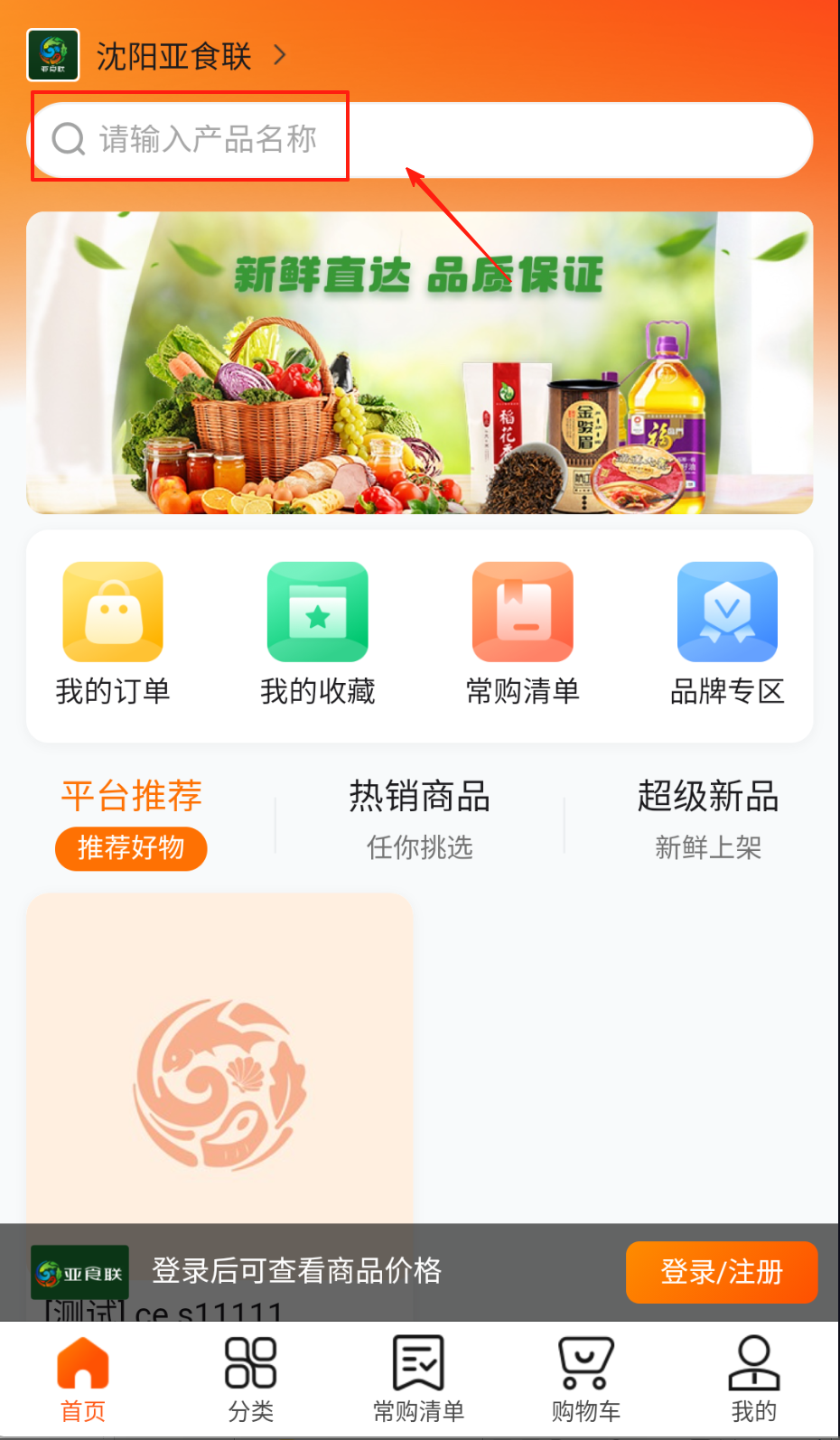 2、在搜索栏输入具体商品名称,通过关键词匹配快速找到目标食材完成选品。