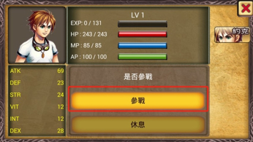 2、选择角色点击参战进入战斗。