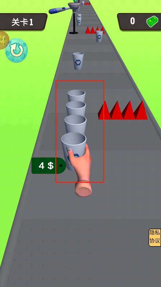 3、在游戏中,点击拖动杯子以收集。