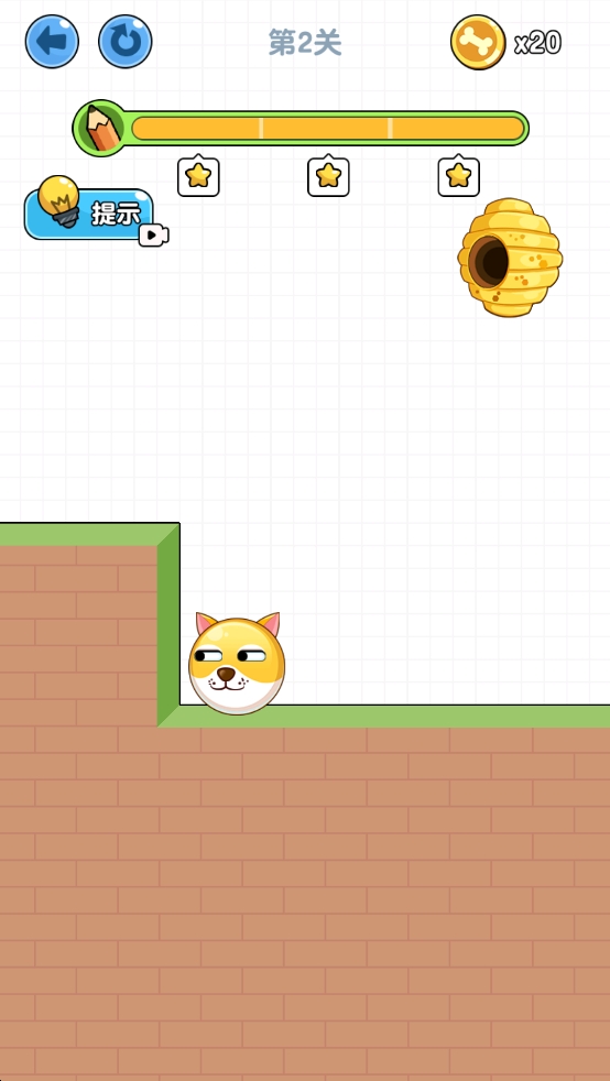 狗狗肿么了带来轻松有趣的闯关体验,简约画风搭配烧脑玩法。通过绘制线条保护小狗避开蜜蜂攻击,每个关卡都设计独特地形与机关,考验你的策略思维。挑战时线条画得越短,得分越高,收集星星还能解锁可爱皮肤。丰富关卡与趣味机制让人停不下来,适合休闲时来一局。