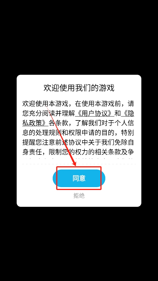 1、阅读并同意《用户协议》和《隐私政策》开始游戏。