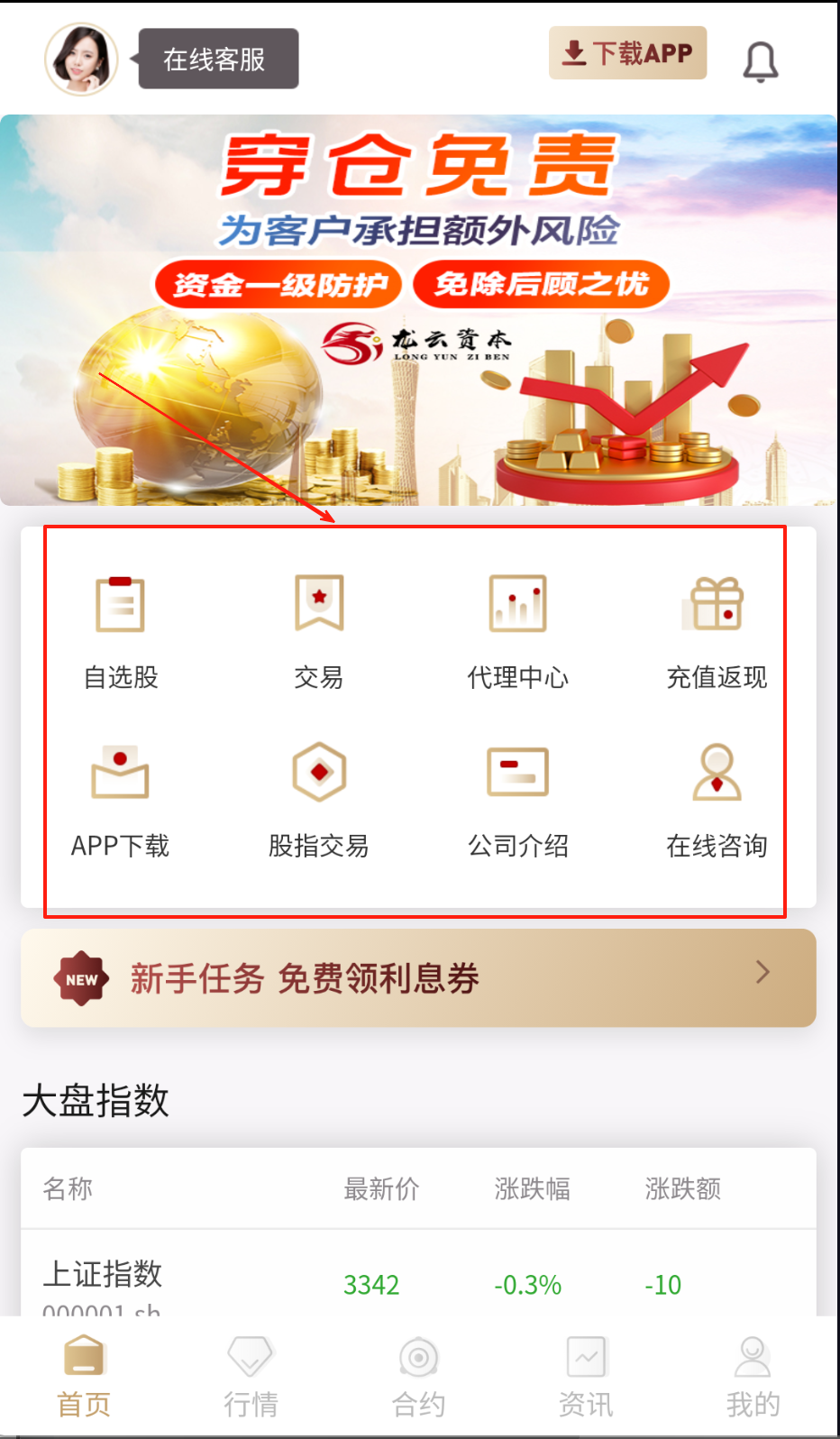 龙云智优选整合股票交易与资金管理功能,用户可通过可视化界面查看总资产与资金明细,支持1-10倍杠杆灵活配资操作,实时更新上证指数等大盘数据,新手任务系统可免费领取利息券,内置专属客服与协议签订模块保障交易合规性,满足不同层级投资者的证券操作需求。