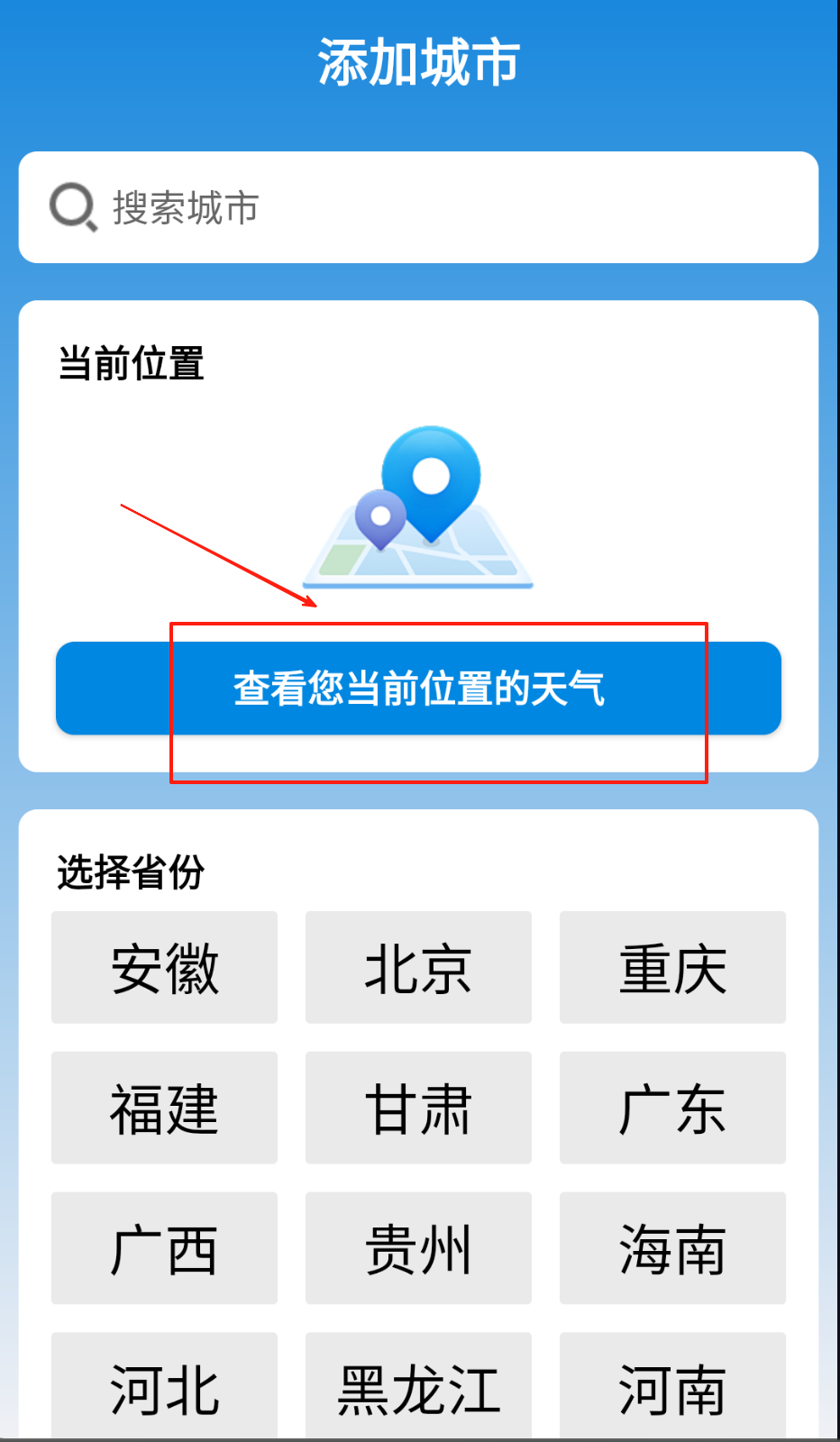 1、打开应用自动获取定位城市天气,滑动屏幕查看未来三日气象趋势。