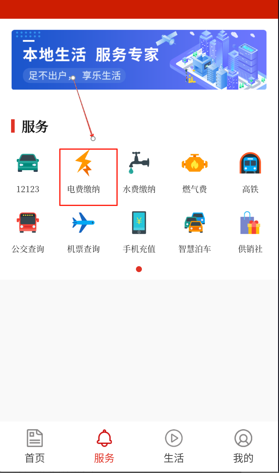 2、进入“服务”板块,选择水电缴费功能,输入户号即可完成在线支付。
