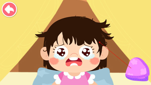 3、先帮妹妹擦一擦小脸蛋,点击右边的毛巾帮助妹妹把脸擦干净。
