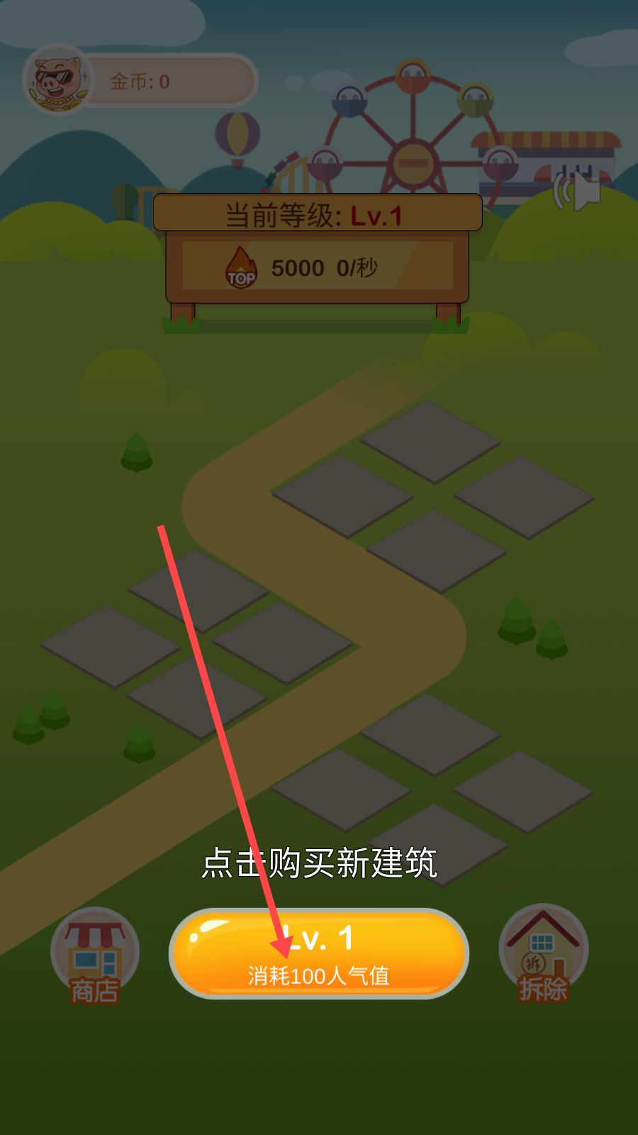 1、进入游戏,玩家可以通过用人气值购买建筑。
