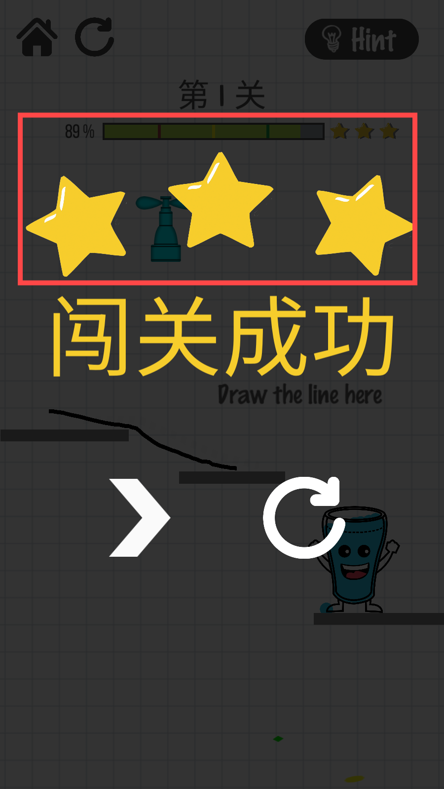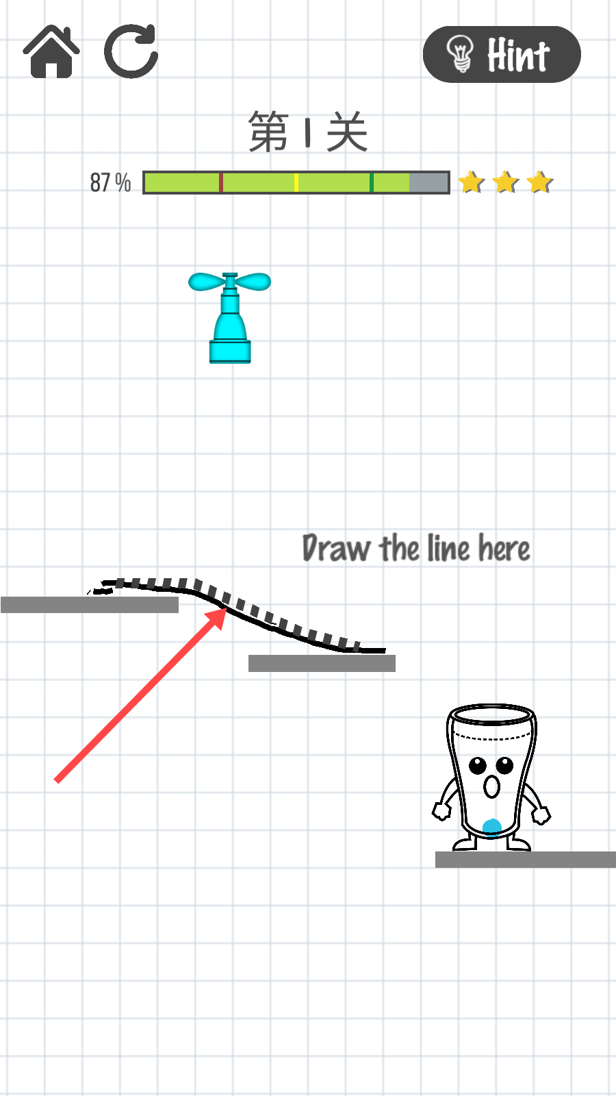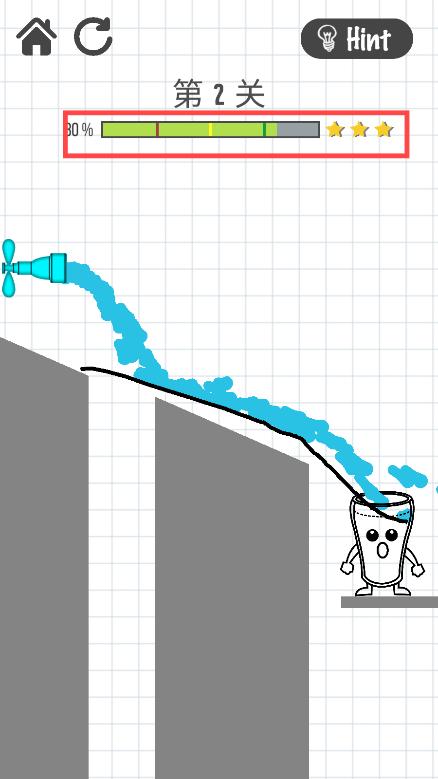 1、进入游戏,玩家用铅笔画桥,让流出来的水到水杯中,达到一定量就能通过。