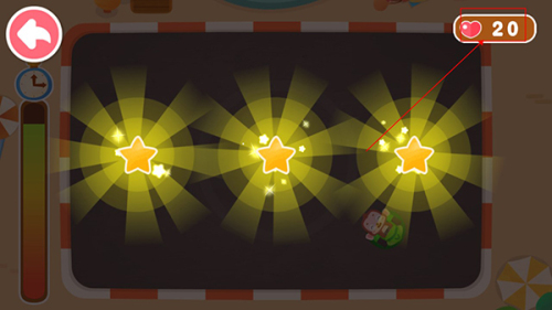 3、看到左边有计时器,通关速度越快获得的星星就越多,获得的星星会转换成右上角的爱心。