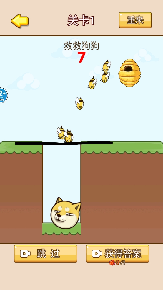 拯救小狗类型的休闲画线闯关小游戏