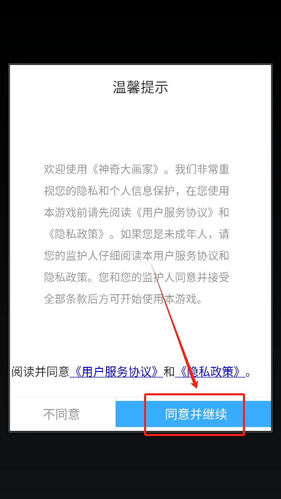1、点击“同意并继续”以接受协议。