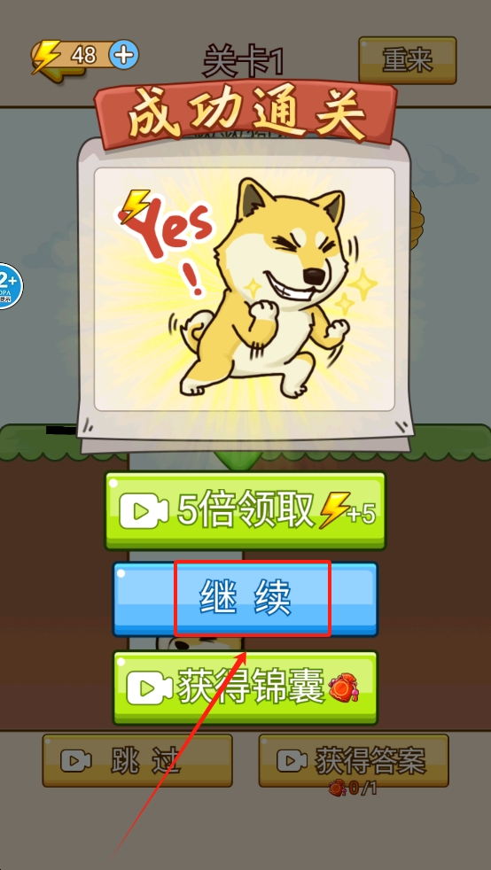 4、点击“继续”以完成关卡并获取奖励。