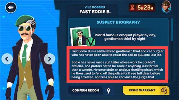 3、精准比对抓捕罪犯:将收集的情报与巅峰侦探社档案库比对,锁定国际恶联特工,发布逮捕令,亲手缉拿真凶,体验破案成就感。