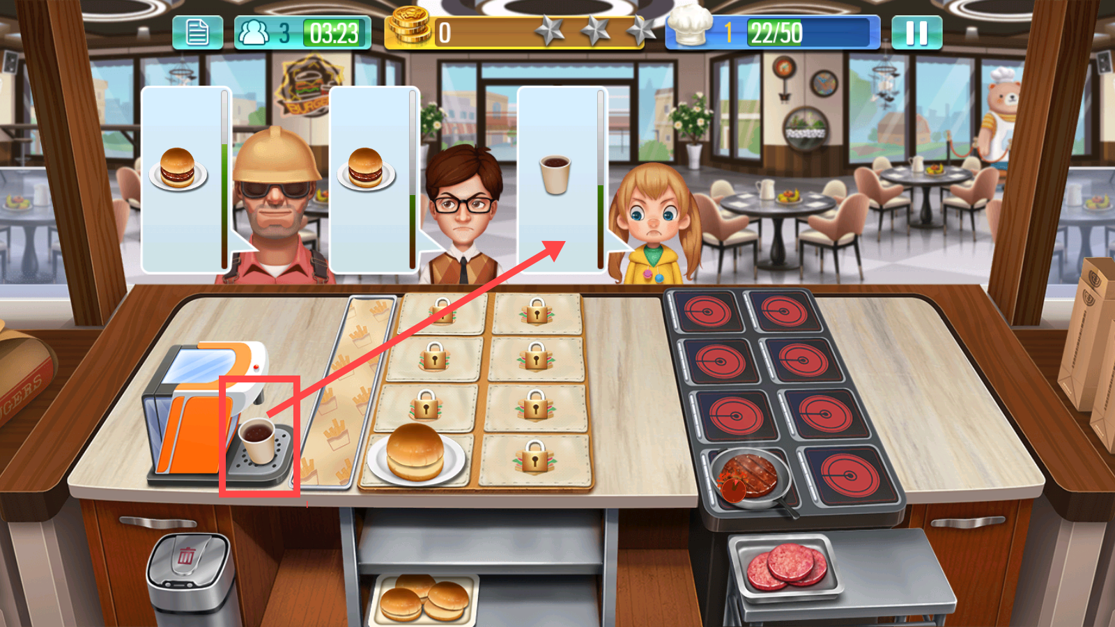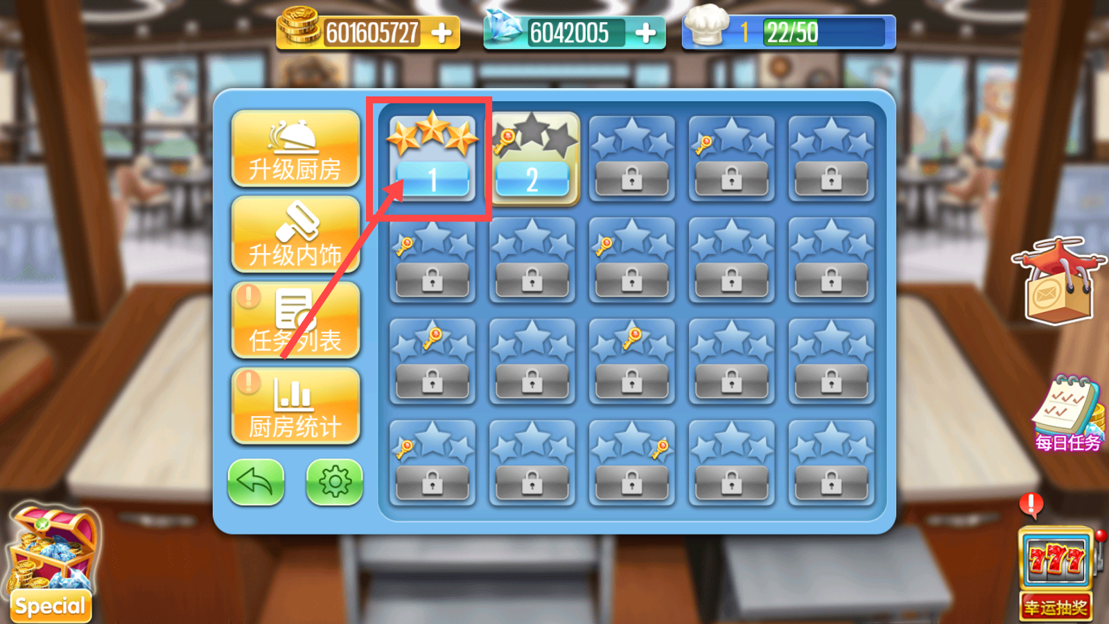 3、策略升级:用经营收入升级厨房设备、研发新食谱,提高烹饪效率与菜品质量。