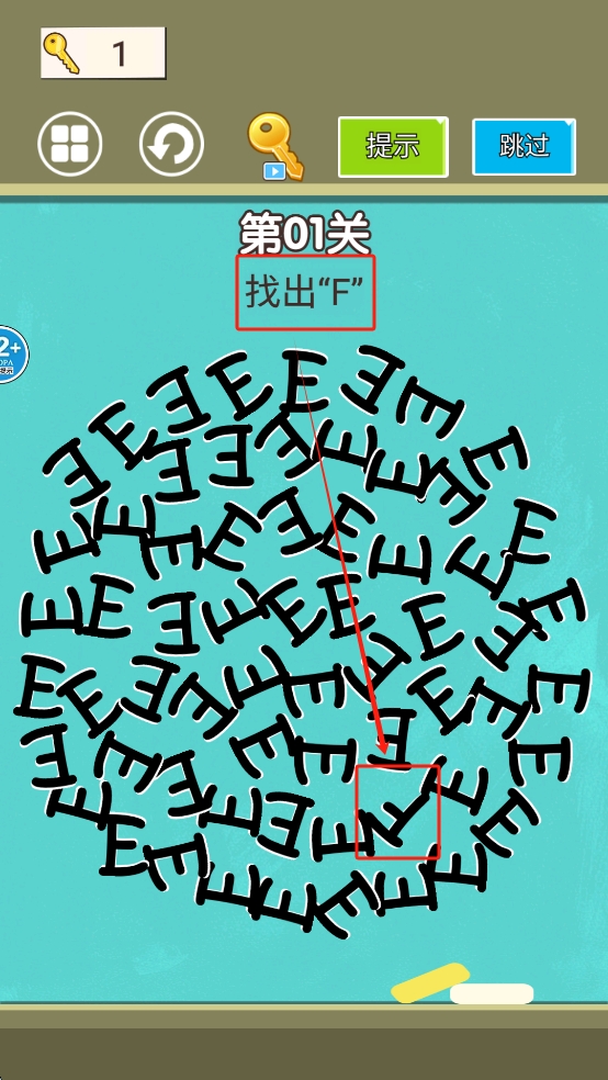 3、在字母中找到指定字母“F”。